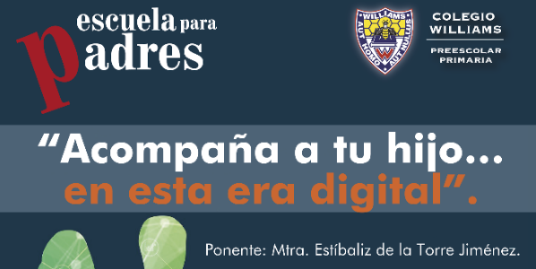 Estimados padres de familia, el Colegio Williams, uno de los mejores colegios de México, les hace una cordial invitación a nuestra Escuela para Padres con la conferencia: “Acompaña y educa a tu hijo… en esta era digital”. Conozcan más detalles del evento.